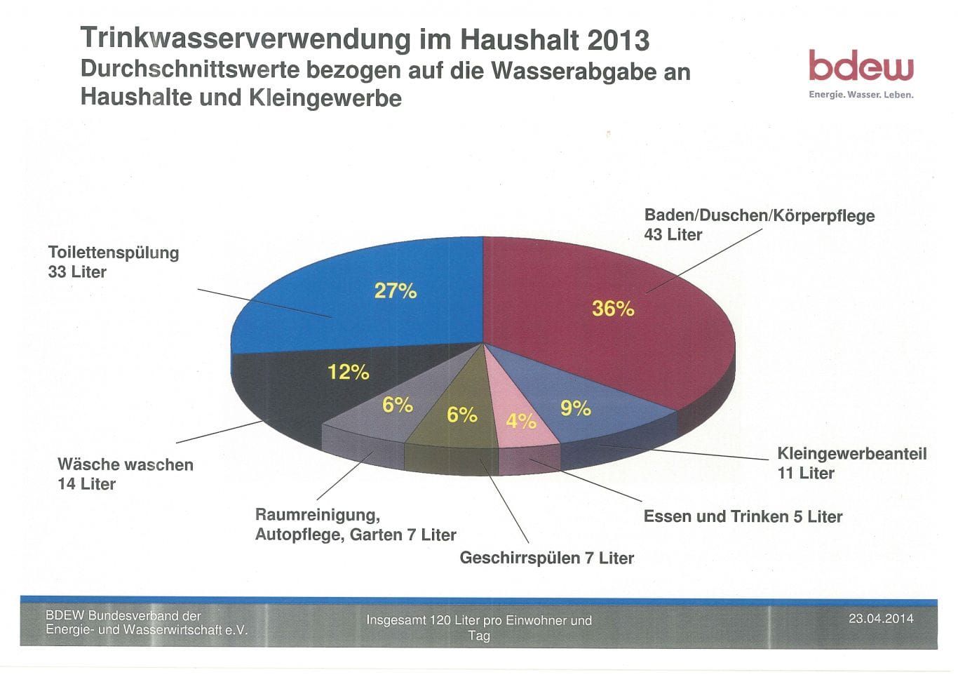 Pro-Kopf-Gebrauch von 120 Litern im Jahre 2013 täglich aufteilte.